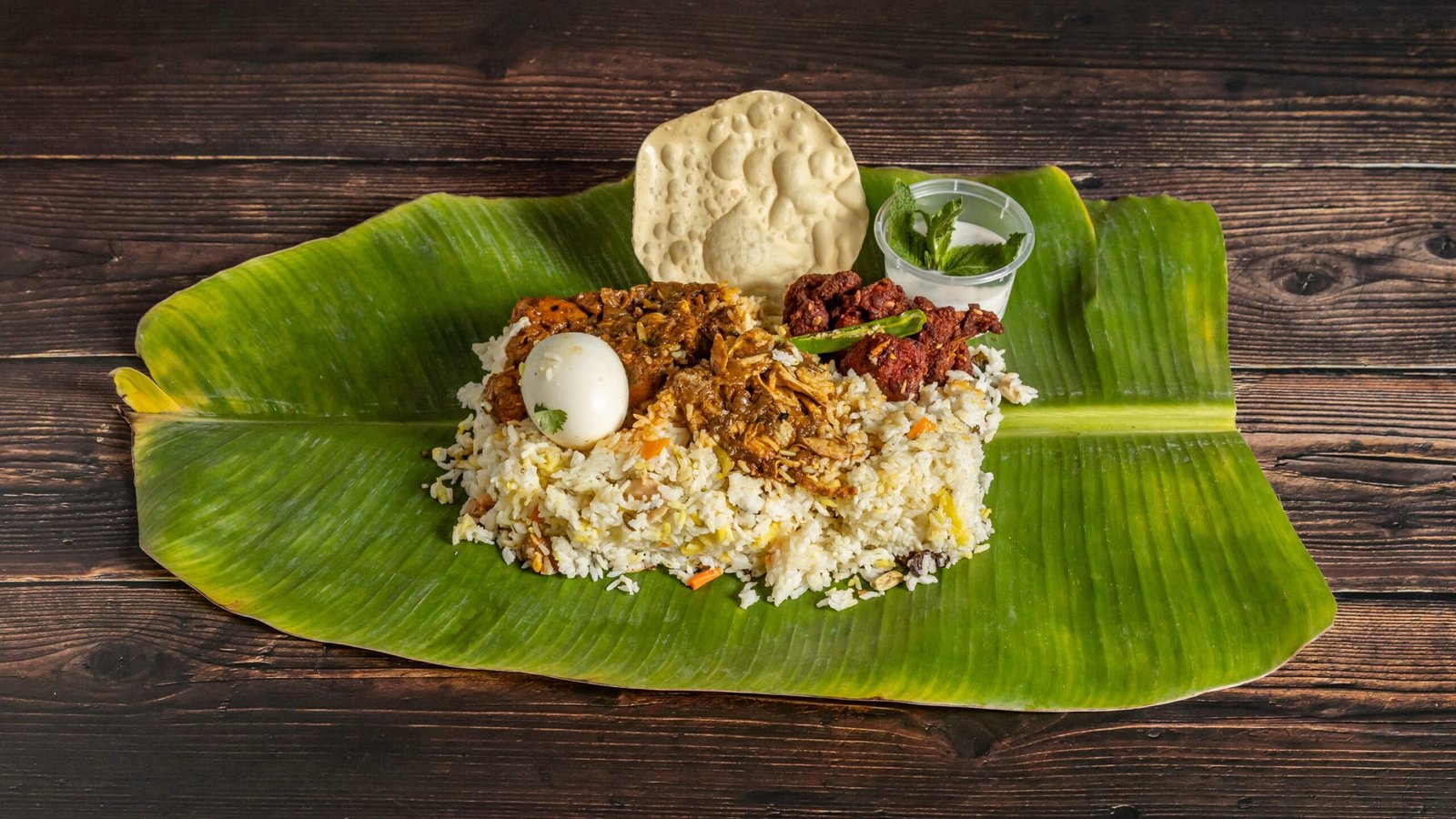 TRADITIONAL KERALA FIREWOOD BIRIYANI WRAPPED IN BANANA LEAF FOR A SMOKY
